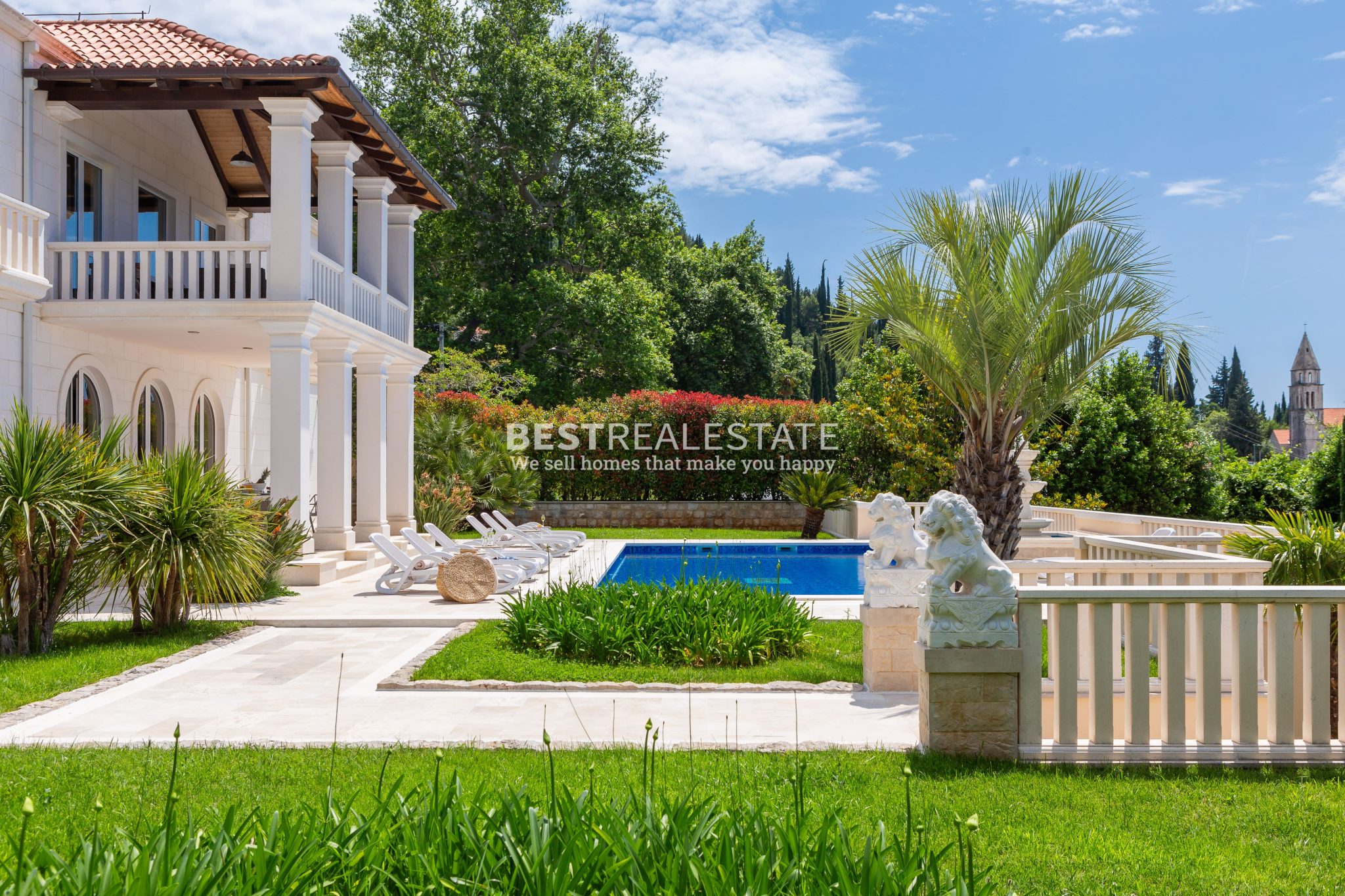 For sale is a luxury white villa situated in a peaceful and private setting near Dubrovnik, located 19 km from the city center, 1.4 km from the sea, and 34 km from the airport.