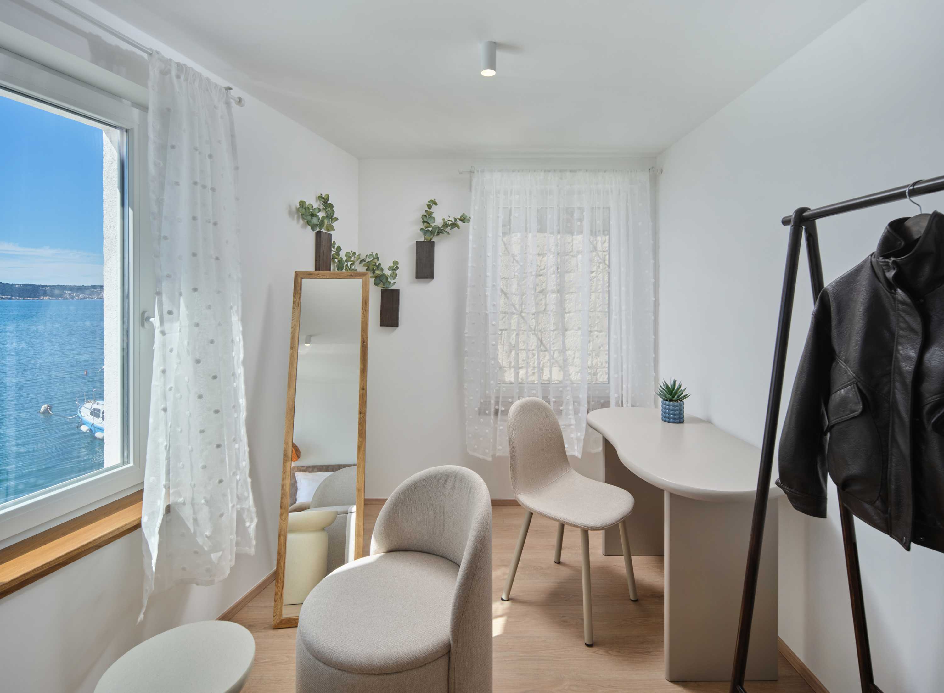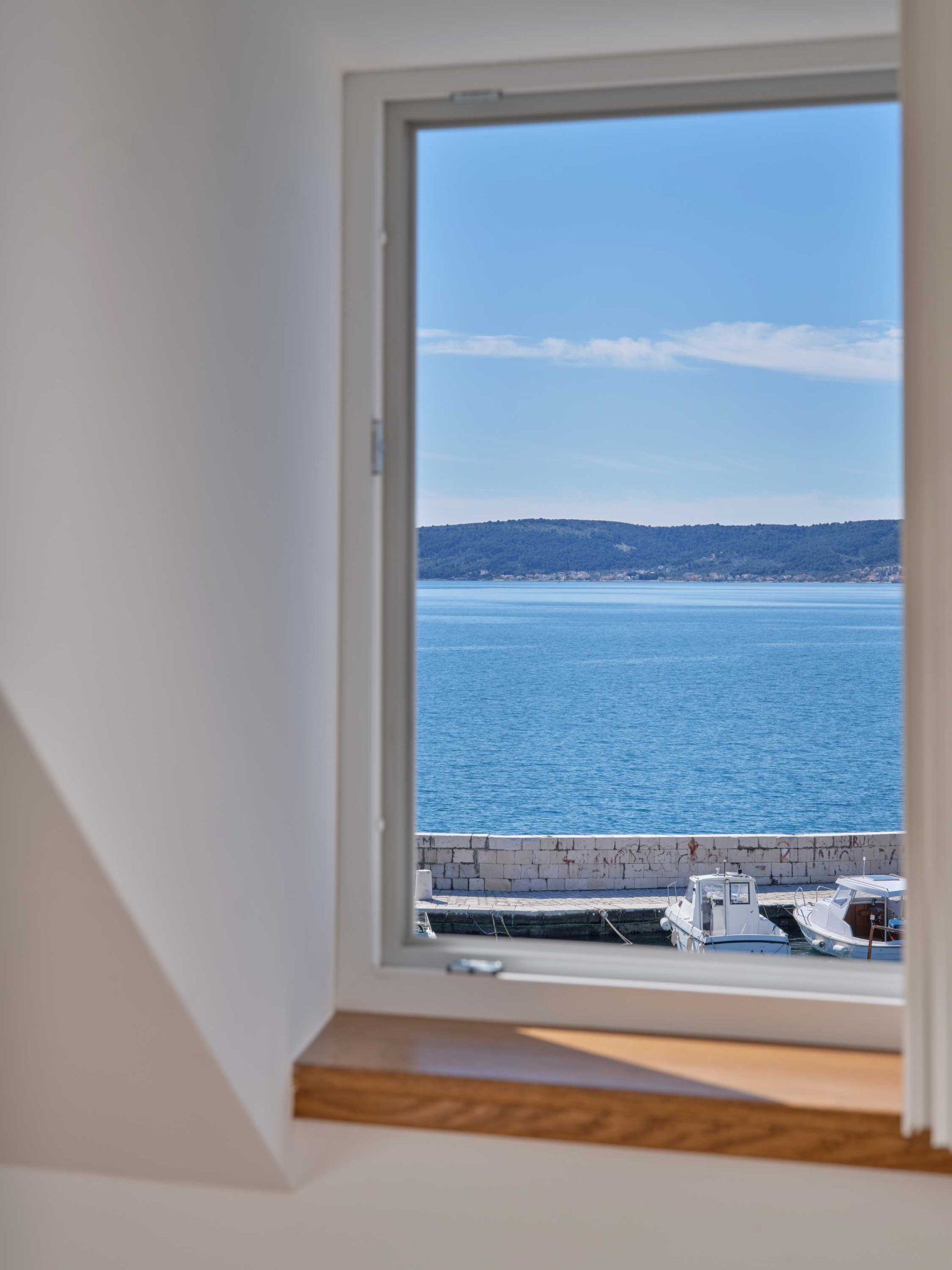 It is situated in a prime location in Kaštela, near Split and Trogir, just a 10-minute drive from Split Airport. The property is within close proximity to beaches, shops, restaurants, and cafés, while still offering privacy, peace, and a comfortable living environment.