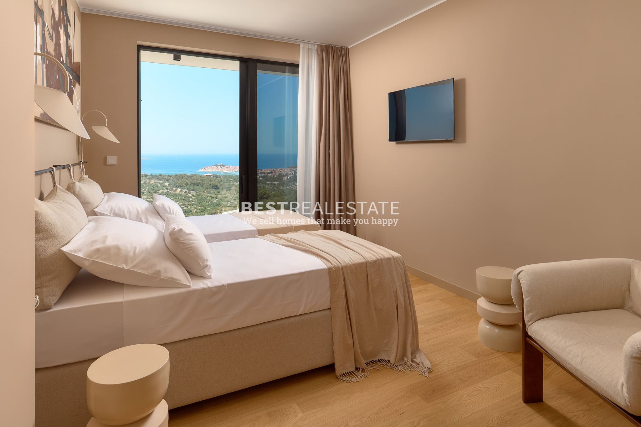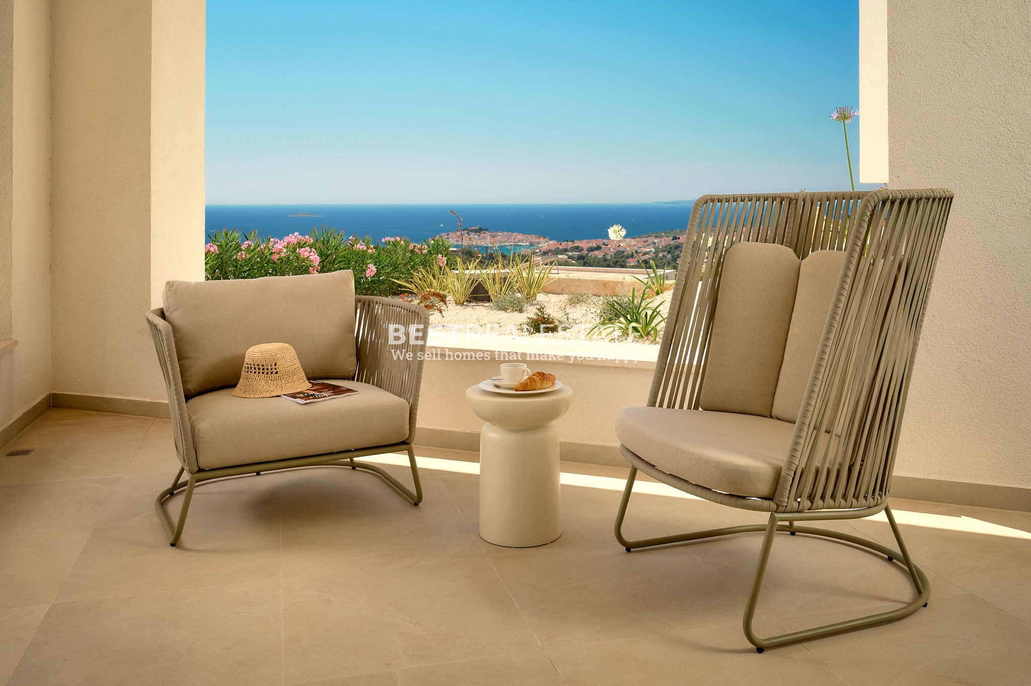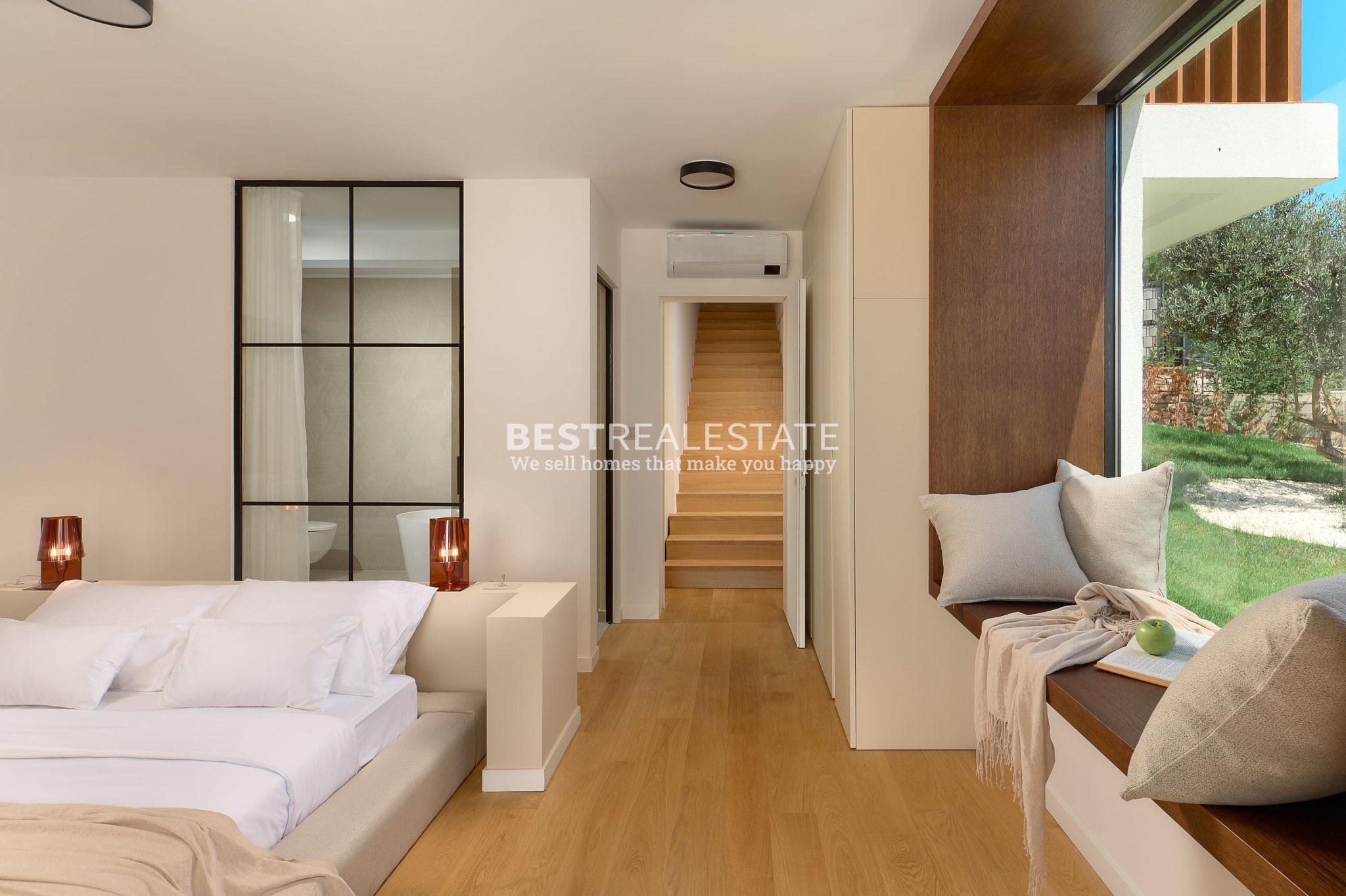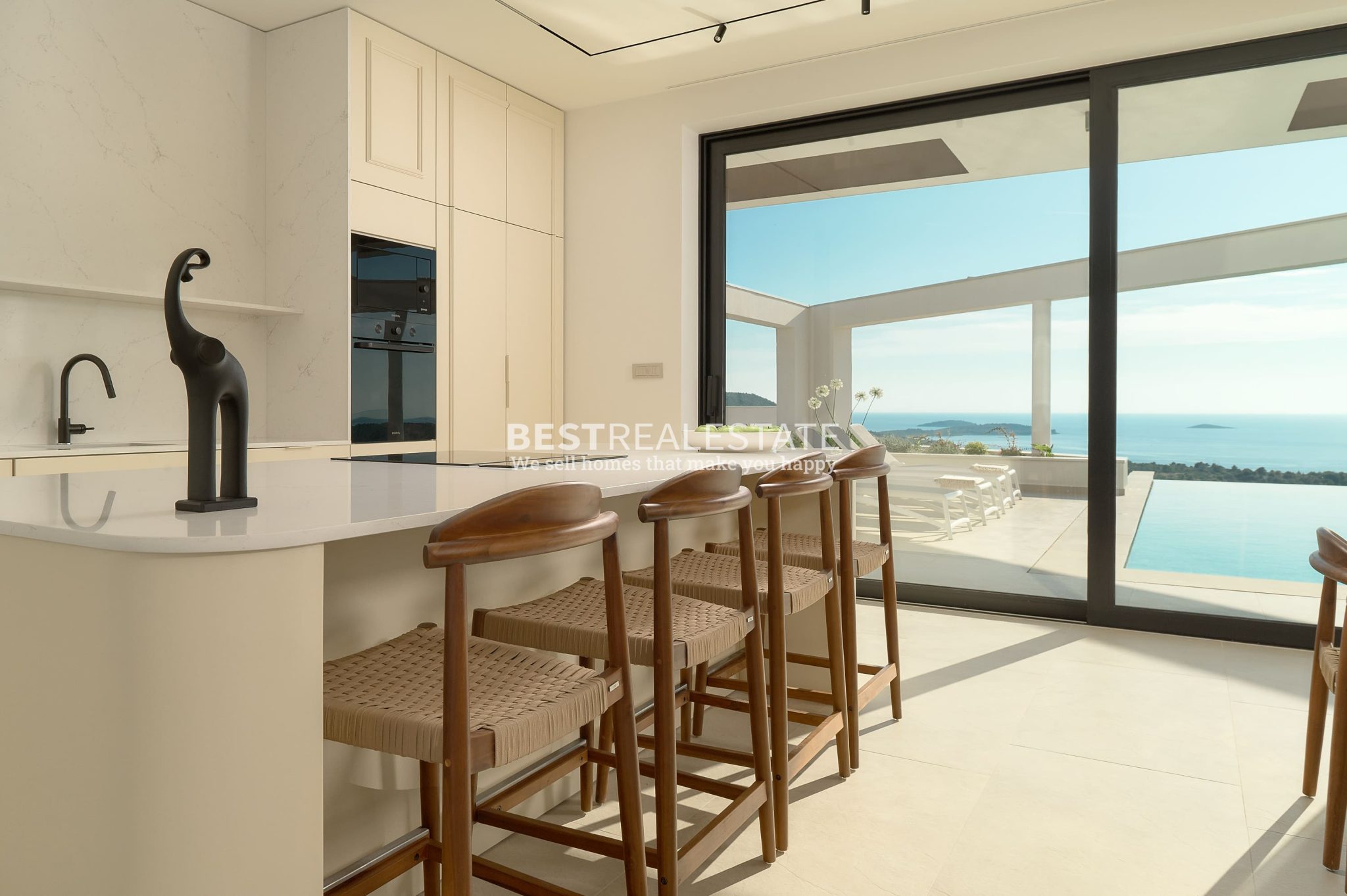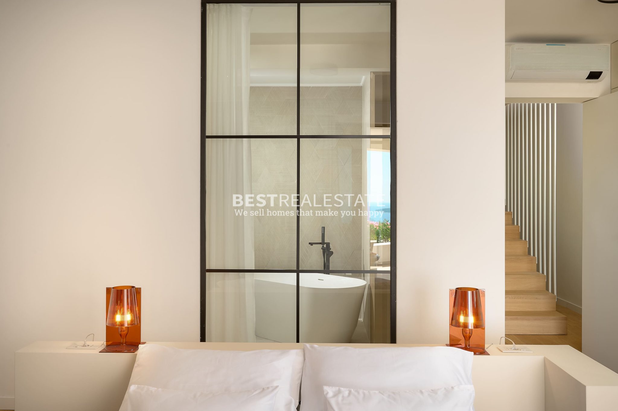 For sale is an exclusive, fully designer-furnished villa located in a peaceful area, offering a truly dominant panoramic view of the sea and the old town of Primošten from every angle of the property. The villa spans approx. 500 m² of living space and sits on a plot of approx. 1100 m².