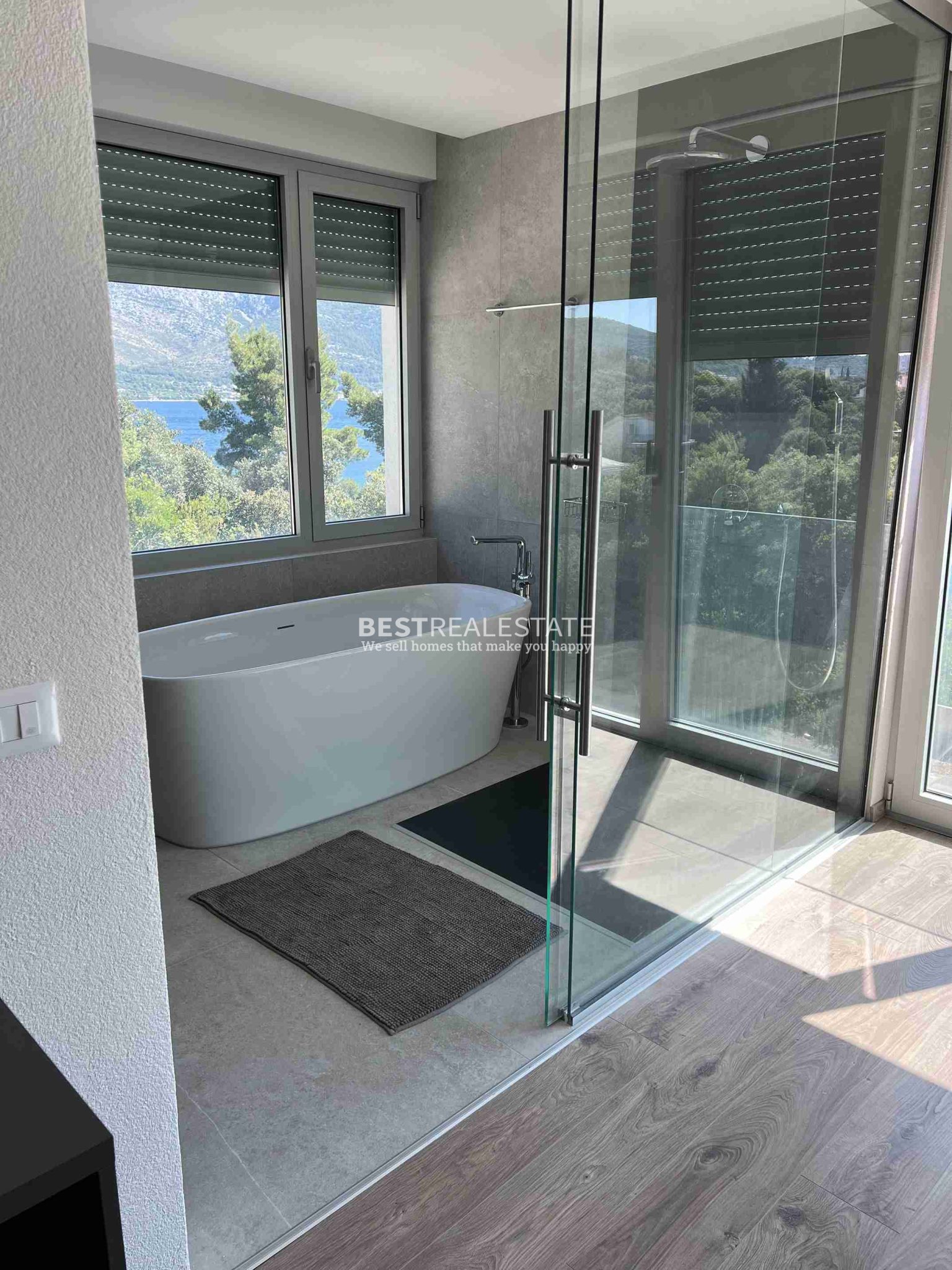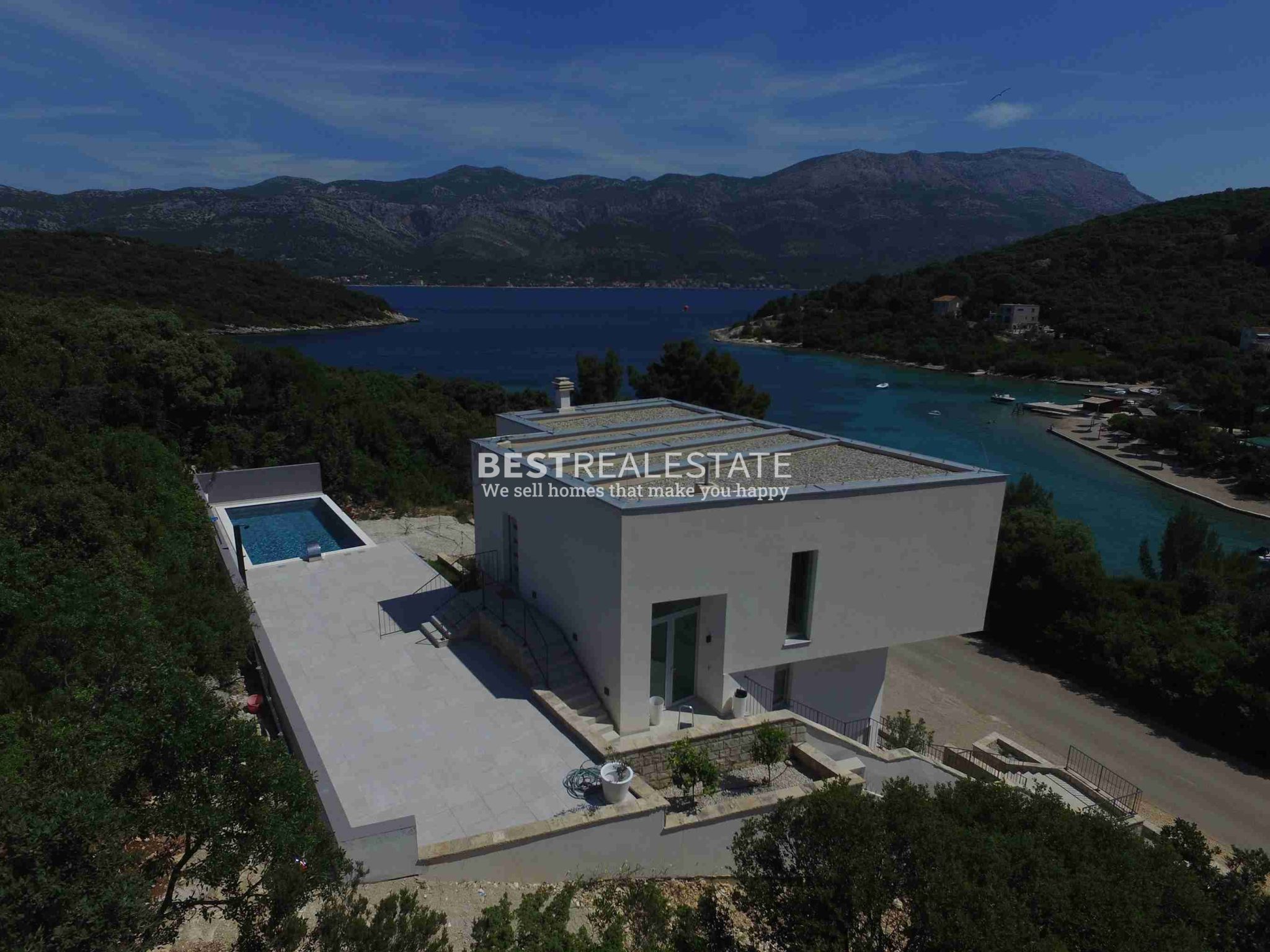 Located in one of the most sought-after bays on the island of Korčula, just 3 km from the enchanting medieval Old Town, this newly built designer villa offers the perfect blend of privacy, contemporary elegance, and breathtaking open sea views. The sea is just a short walk away, approximately 20 meters from the property.