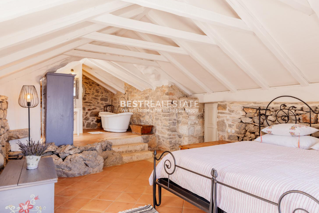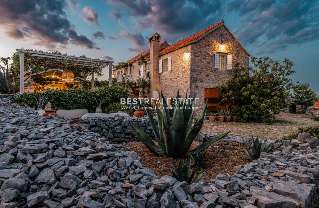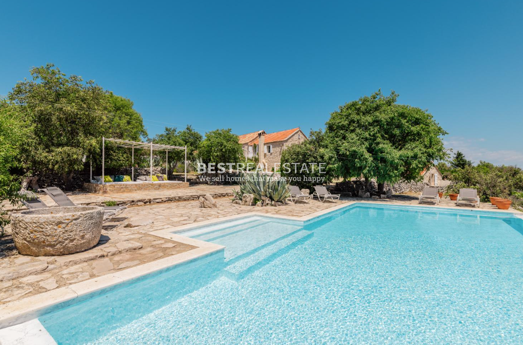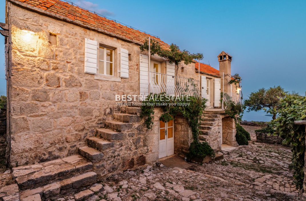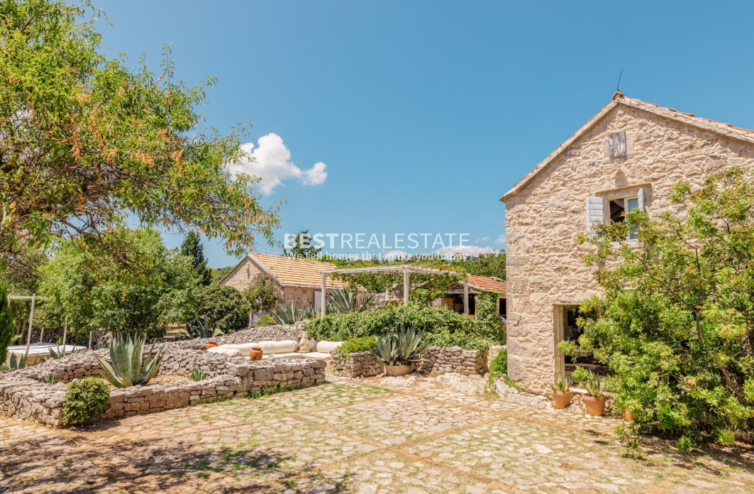 For sale is an exclusive stone villa located on the island of Hvar, set in a peaceful and natural environment, offering complete privacy. The property is situated 11 km from the town center and 2 km from the sea, on an impressive plot of 30,000 m².