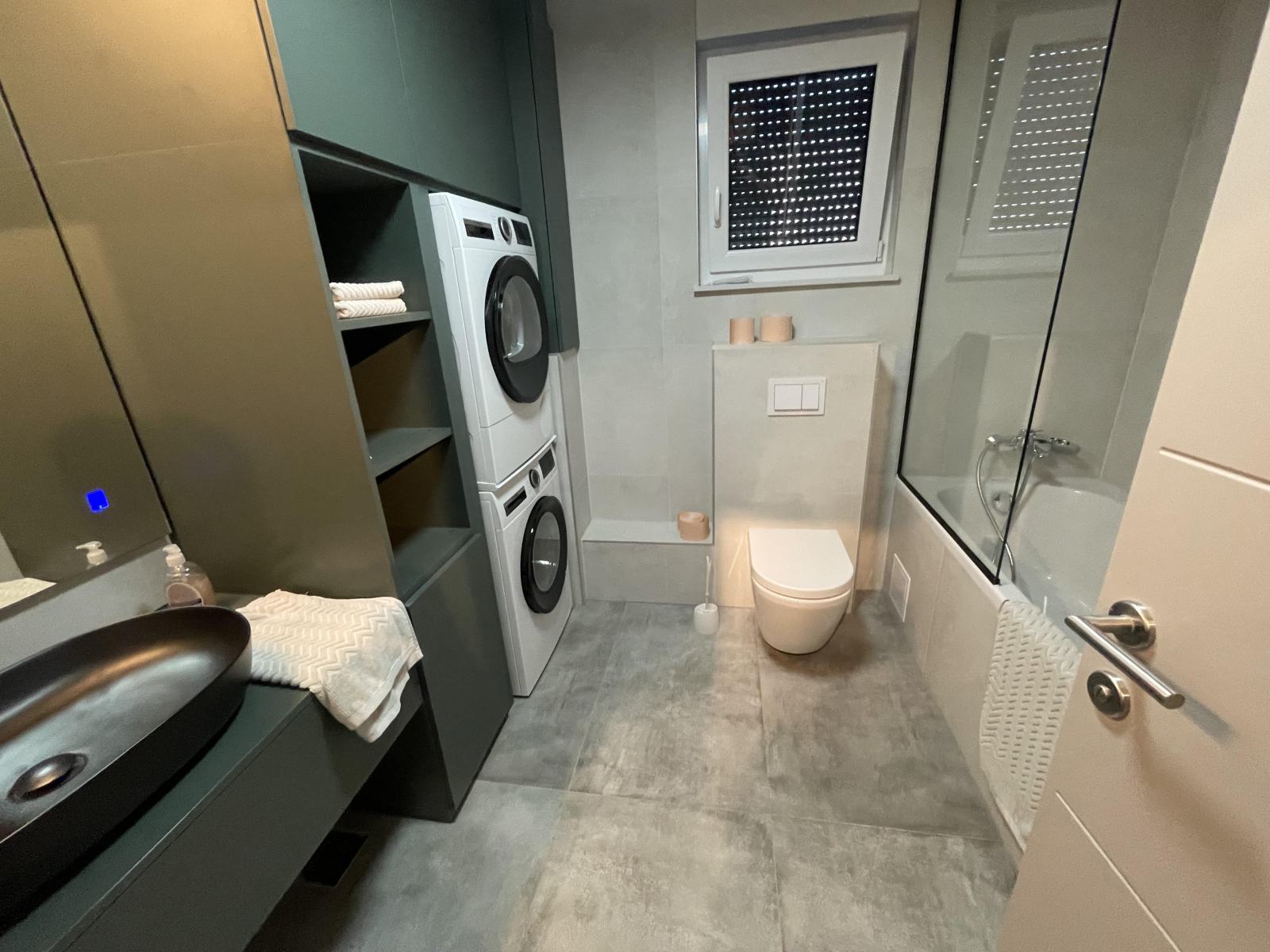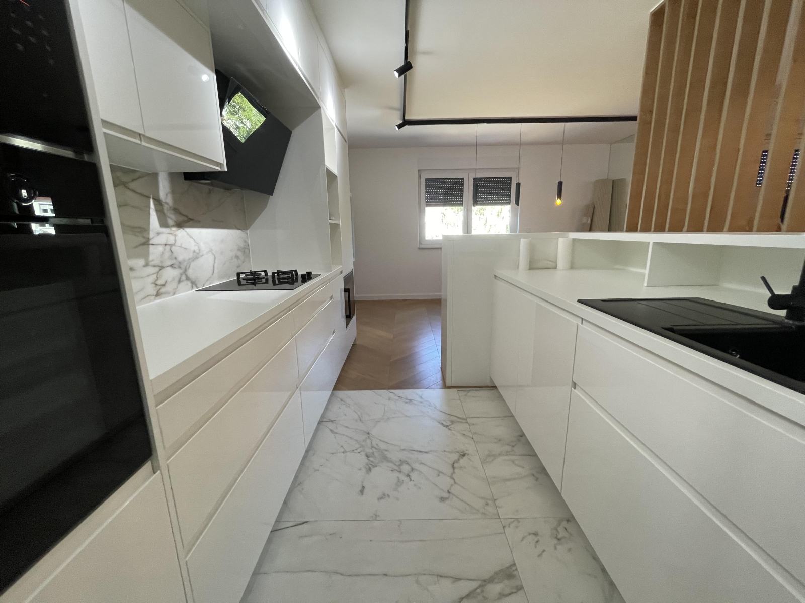 The apartment also includes two garages, each with an area of 19 m², equipped with Hormann garage doors and connections for water and electricity.