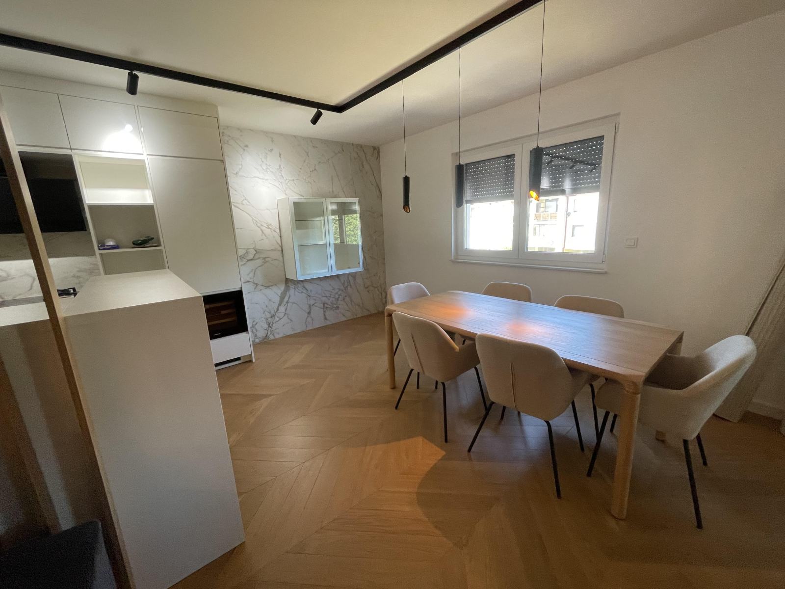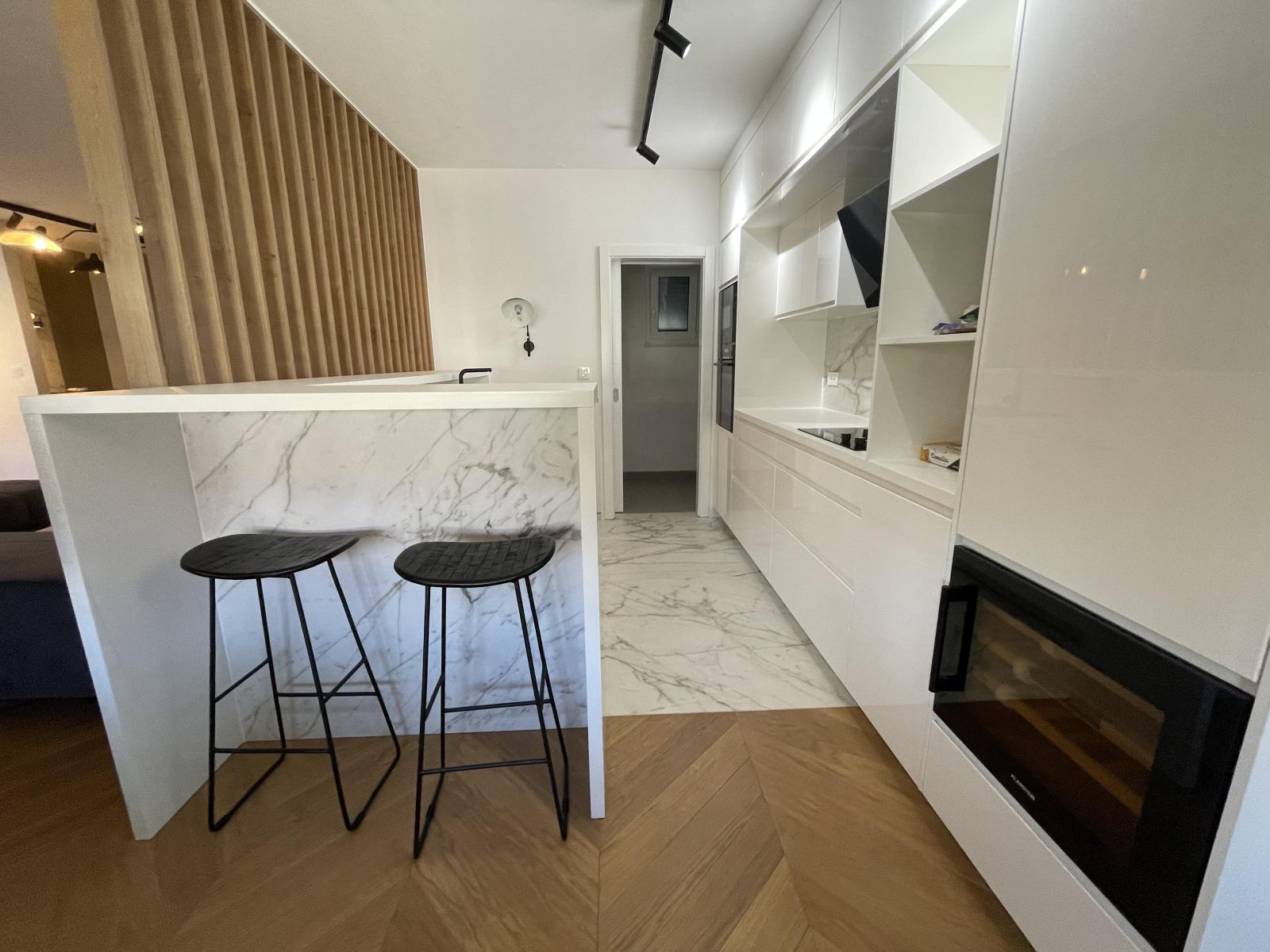 An exclusive apartment is for sale on the second floor of a modern residential building with a total of three floors, built in 2022. The building has two entrances, each with four apartments, ensuring peace and privacy for residents.