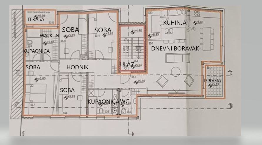 The apartment has triple-sided orientation, providing plenty of natural light throughout the day.