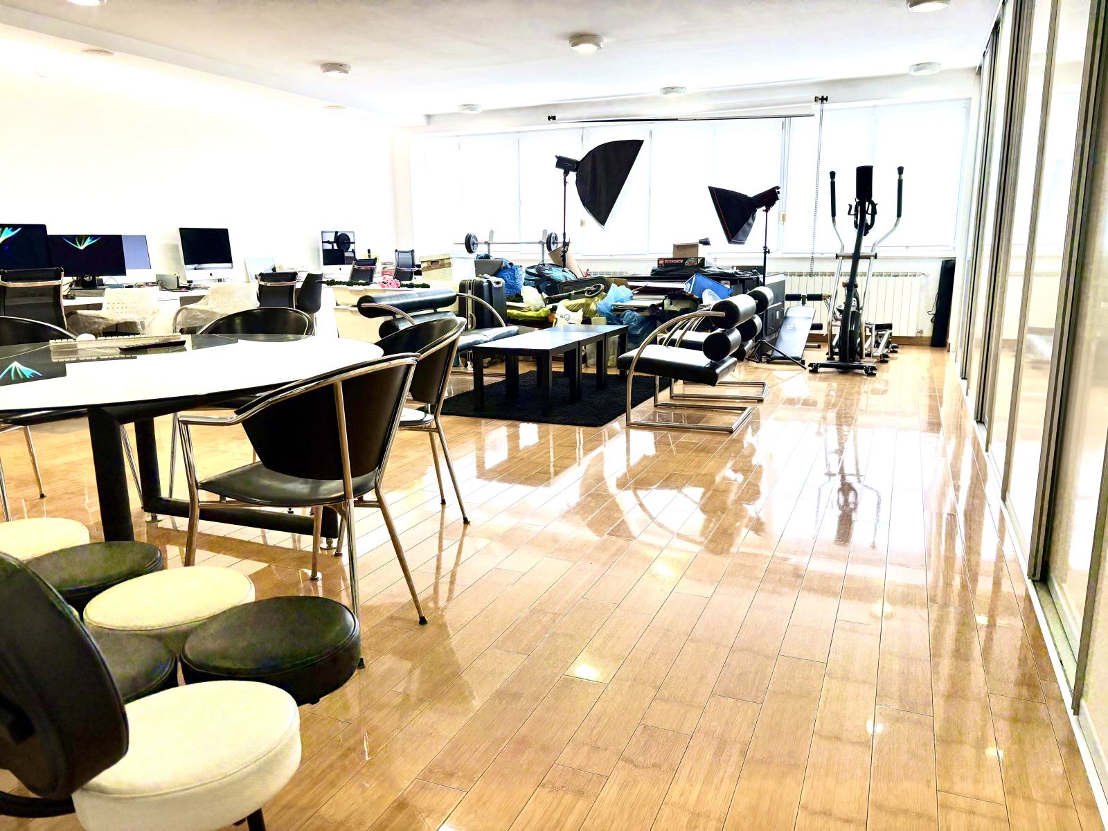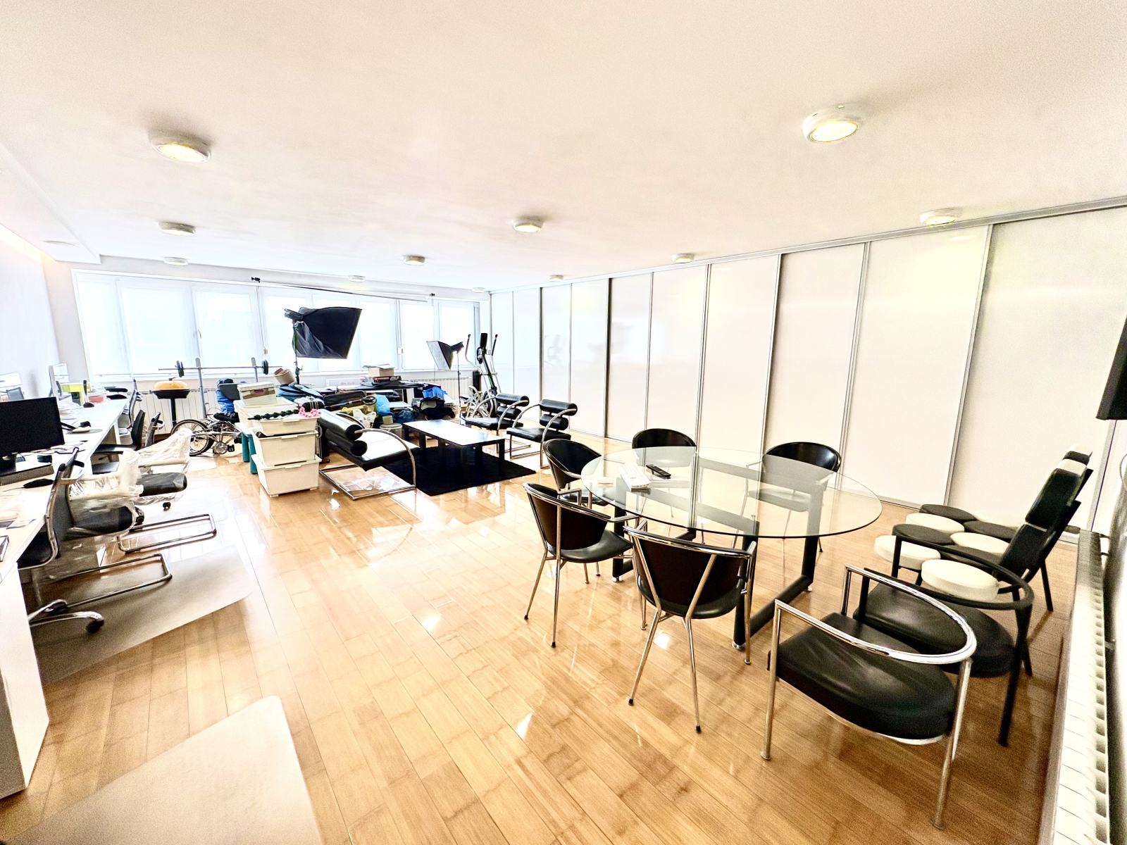 Currently used as a graphic design office, the space offers a highly functional layout without structural limitations, making it suitable for: