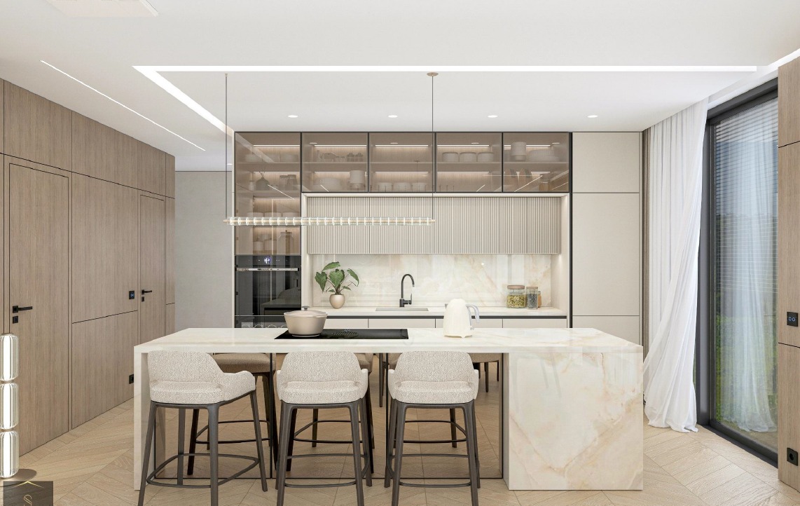 - Prizemlje: prostrani dnevni boravak povezan s modernom kuhinjom i blagovaonicom, gostinjski WC, izlaz na prednju i stražnju terasu s roštiljem te direktan pristup bazenu.