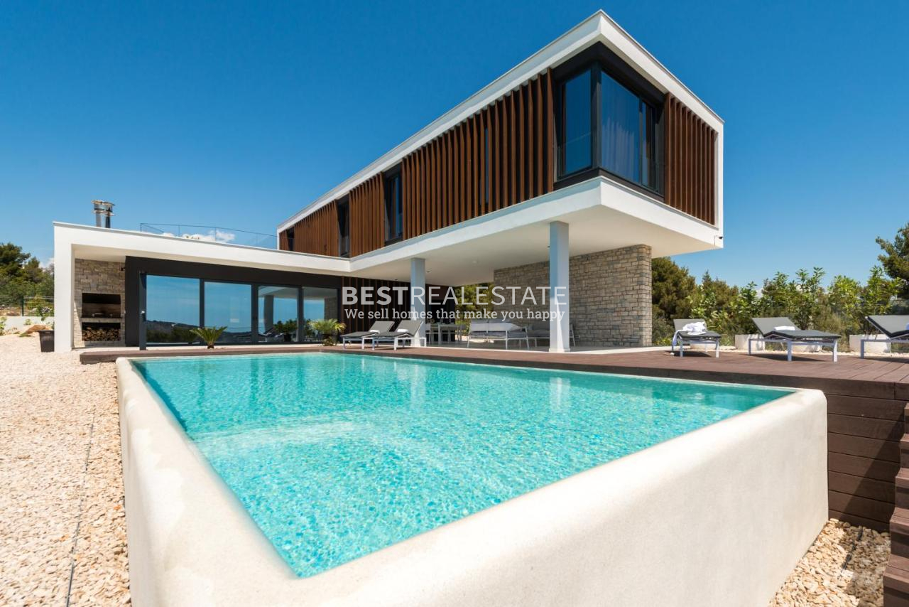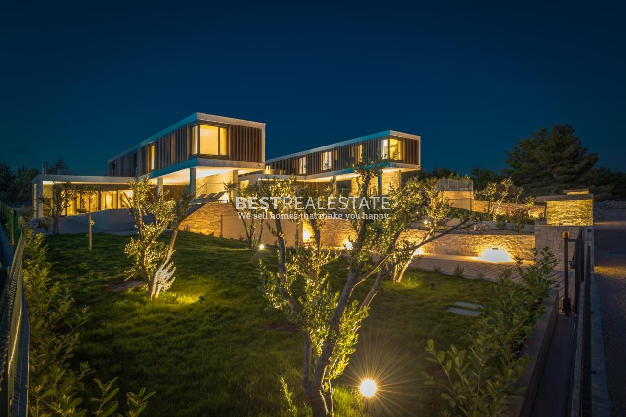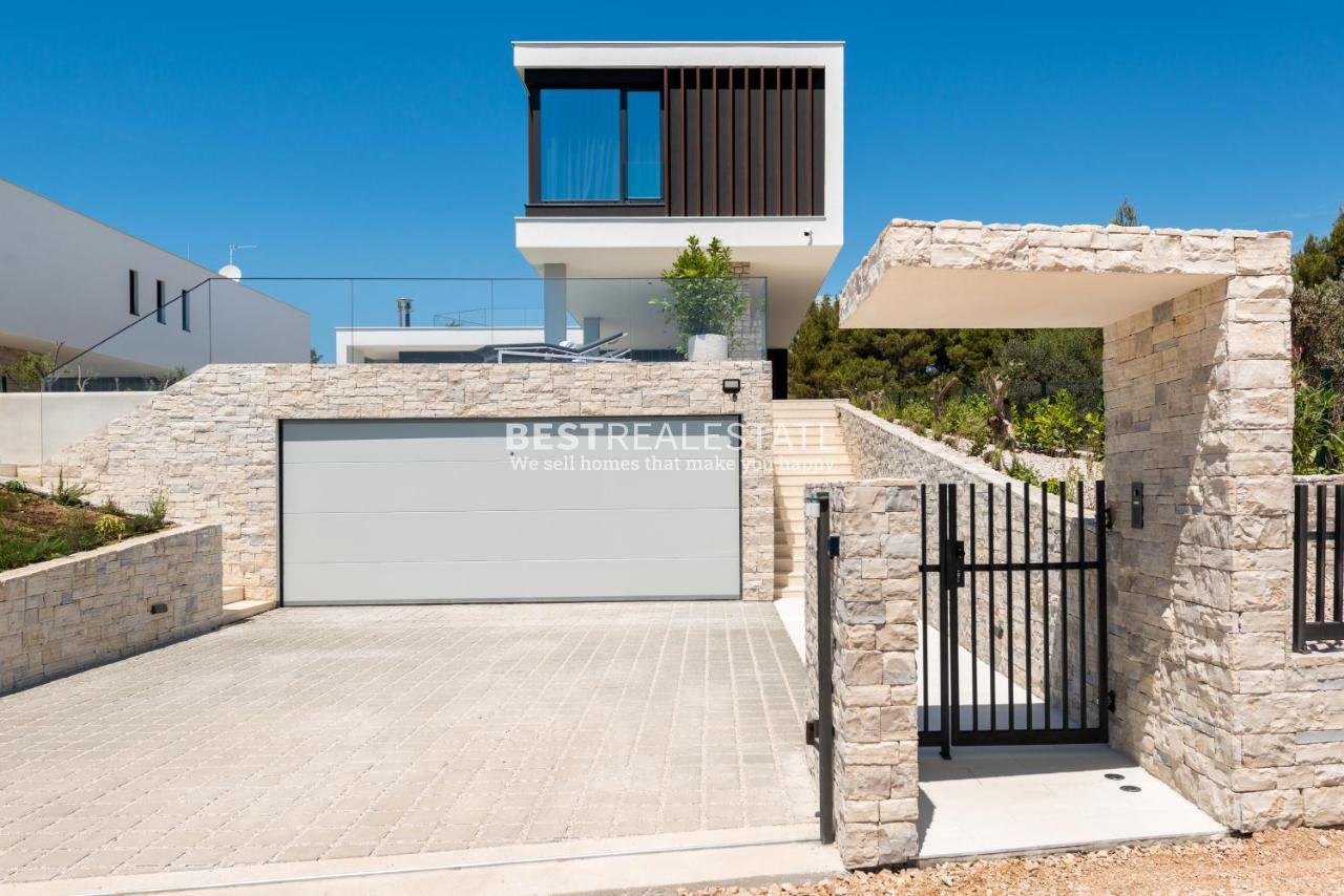 Uživajte u savršenoj kombinaciji modernog dizajna i mediteranskog stila života u ovoj predivnoj vili izgrađenoj 2020. godine. S 300 m² unutarnjeg prostora, 4 spavaće sobe i 4 kupaonice, vila pruža udobnost, eleganciju i privatnost.