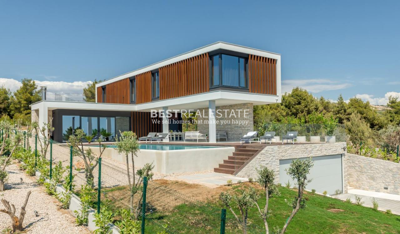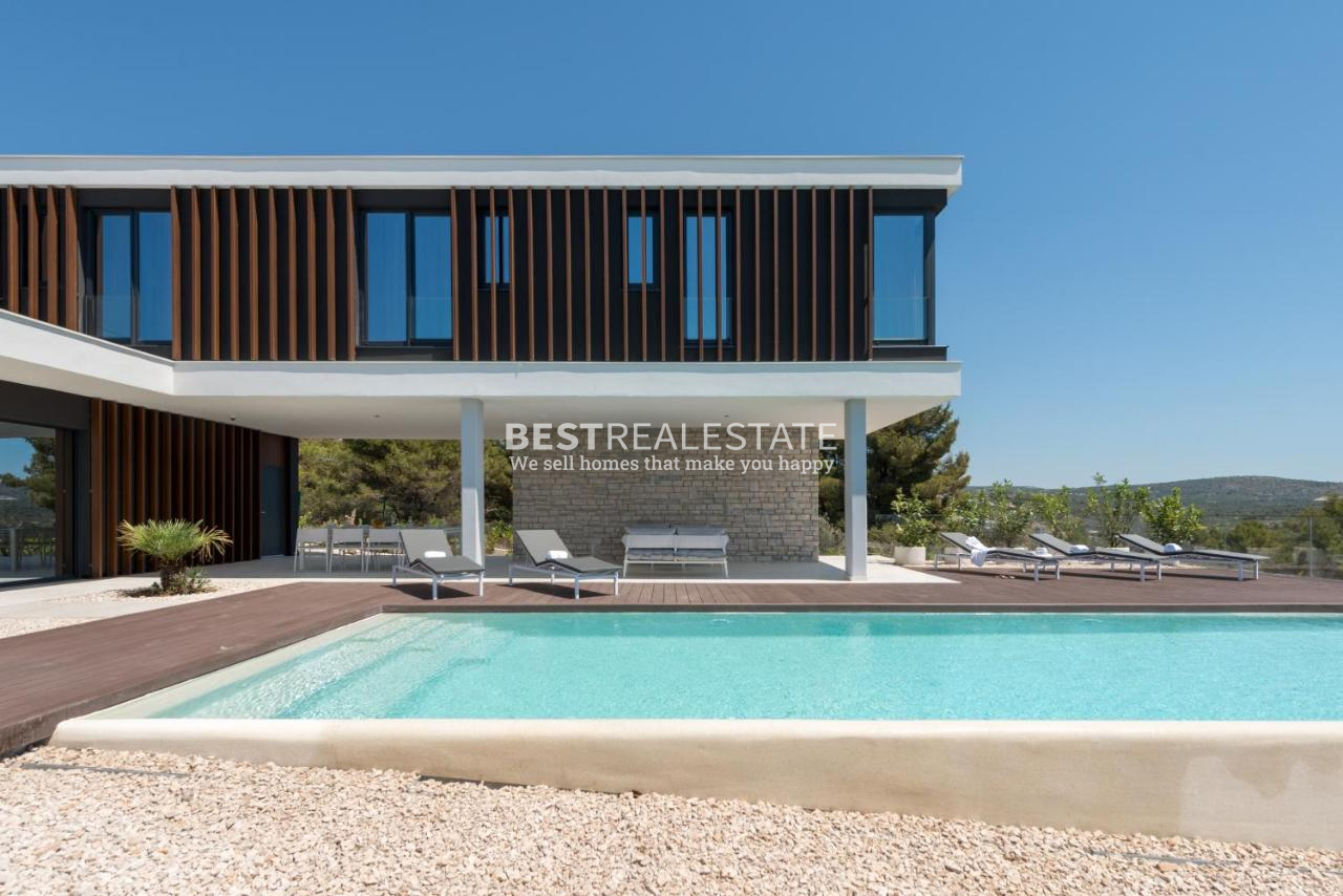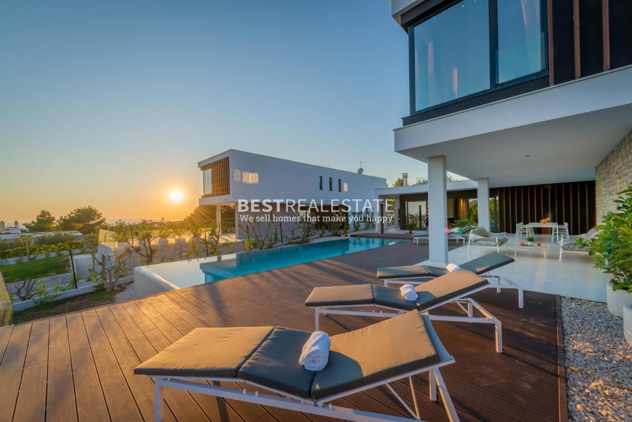 Uživajte u savršenoj kombinaciji modernog dizajna i mediteranskog stila života u ovoj predivnoj vili izgrađenoj 2020. godine. S 300 m² unutarnjeg prostora, 4 spavaće sobe i 4 kupaonice, vila pruža udobnost, eleganciju i privatnost.